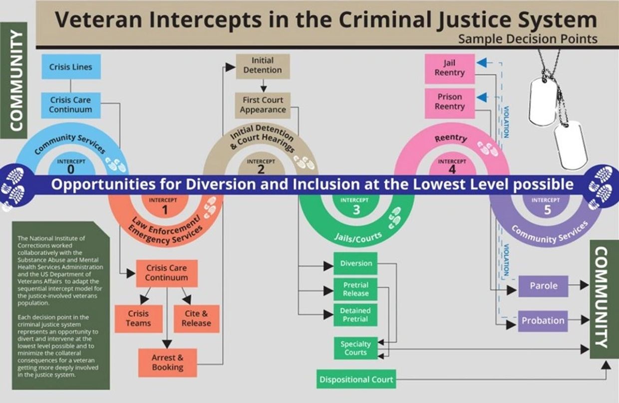 1. Short screener: A short pre-adjudication screening tool will identify veterans as they enter the justice system and measure their risk of re-offending. This tool will help justice system officials identify suitable candidates for Veterans Treatment Court and refer them for a full assessment.